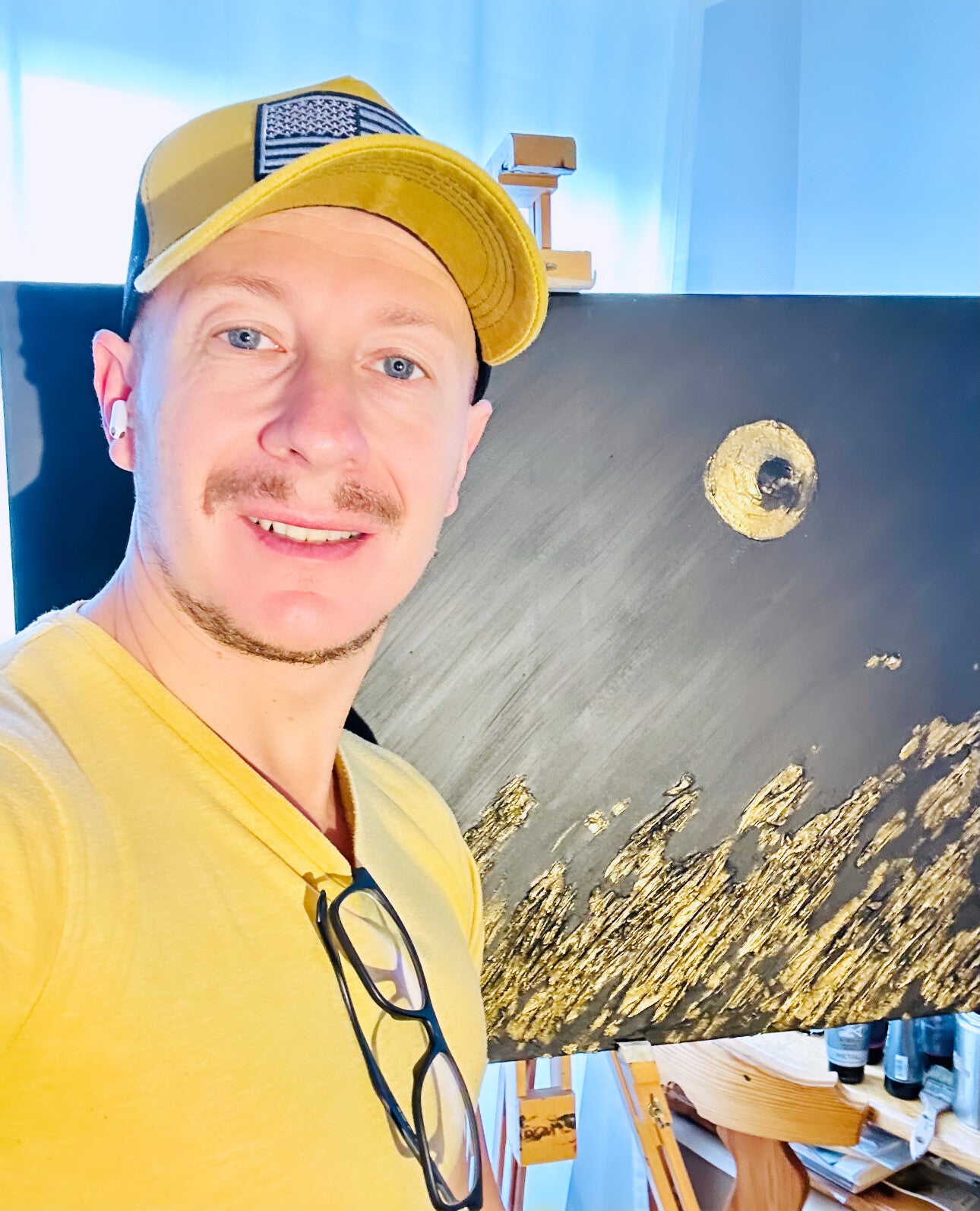 una volta diplomato ho iniziato percorsi lavorativi totalmente differenti fino al 2017 quando, trasferendomi a Roma, ho ripreso in mano la mia creatività dando vita alla mia pagina (quadridimatteo), alla mia linea di tazze e maglie, ai corsi di pittura e alle mie opere su tela.